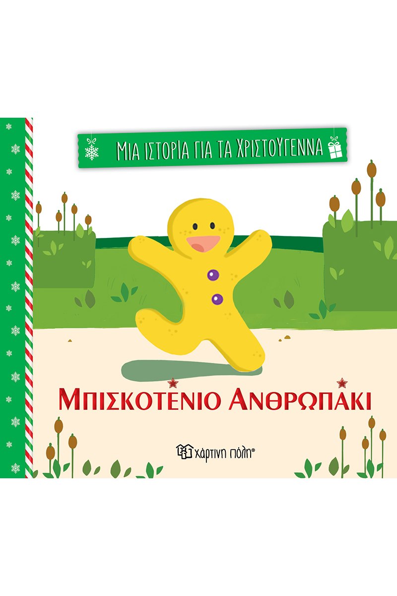 Οι γιορτές πλησίαζαν όταν μια καλή γριούλα αποφάσισε να πλάσει ένα μπισκοτένιο ανθρωπάκι. Του έβαλε δυο σταφίδες για μάτια και βατόμουρα για κουμπιά. Εκείνο, ξαφνικά, ζωντάνεψε και άρχισε να τρέχει μακριά. Θα καταφέρει να ξεφύγει από τη γριούλα, αλλά και από όλα τα ζώα που το κυνηγάνε για να το φάνε;