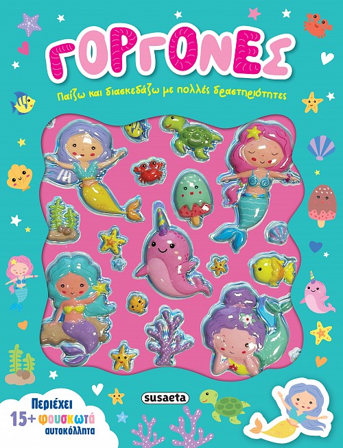 Γοργόνες, κοράλλια, ιππόκαμποι, κοχύλια και βυθισμένα πλοία συνθέτουν το πιο μαγικό υποβρύχιο σκηνικό! Ακολούθησε τις γοργόνες μέσα από τις πιο διασκεδαστικές δραστηριότητες και κόλλησε τα φουσκωτά, τρισδιάστατα αυτοκόλλητα όπου εσύ θέλεις!