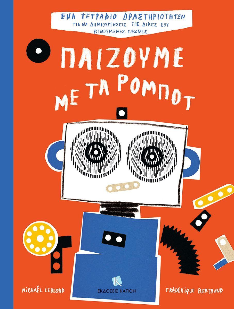 Καλωσήρθες στον κόσμο των ρομπότ! Με τις μπογιές και τις ιδέες σου σχεδίασε, χρωμάτισε και δημιούργησε τα δικά σου ρομπότ που μπορούν να κινούνται χάρη στη μαγεία της οφθαλμαπάτης. Το διάφανο πλαίσιο με τις μαγικές κάθετες ρίγες, το οποίο συμπεριλαμβάνεται στο βιβλίο, θα ξεκλειδώσει τη φαντασία σου και θα ζωντανέψει τις δημιουργίες σου! Η τεχνική του κινηματογράφου σκιών οφείλει το όνομά της σε ένα οπτικό παιχνίδι που ήταν στη μόδα στις αρχές του 20ού αιώνα: ένα μικρό κινέζικο θέατρο σκιών που αποτελούνταν από ένα ρολό χαρτί, το οποίο ξεδιπλωνόταν πίσω από ένα διάφανο πλαίσιο με μαύρες κάθετες λωρίδες. Αυτός ο έξυπνος μηχανισμός επέτρεπε στους χαρακτήρες της ιστορίας να ζωντανέψουν, παρουσιάζοντας εναλλάξ στους θεατές τα δύο στάδια μιας κίνησης. Όπως στον κινηματογράφο ή στα κινούμενα σχέδια, η ψευδαίσθηση της κίνησης προκαλείται από την ιδιότητα του αμφιβληστροειδούς να διατηρεί στη «μνήμη» του ματιού για ένα κλάσμα του δευτερολέπτου μια εικόνα που μόλις έχει εξαφανιστεί. Στην ίδια αρχή βασίζονται τα βιβλία με στατικές διαδοχικές εικόνες. Εάν τα ξεφυλλίσεις γρήγορα, μένεις με την εντύπωση ότι οι εικόνες τους κινούνται. Τελικά η δημιουργία ενός ρομπότ είναι απλή υπόθεση! Ήρθε η σειρά σου να συναρμολογήσεις, να ενεργοποιήσεις, να απενεργοποιήσεις το ρομπότ σου και να δεις τα γρανάζια του να κινούνται πάνω στο χαρτί χάρη σε αυτό το διασκεδαστικό βιβλίο δραστηριοτήτων!