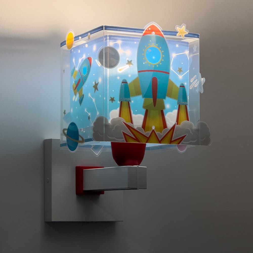 Παιδικό φωτιστικό απλίκα τοίχου με θέμα τους πυραύλους στο διάστημα, ιδανικά σχεδιασμένο για γενικό ή συμπληρωματικό φωτισμό. Η Rocket απλίκα τοίχου διπλού τοιχώματος φωτίζει και προσθέτει διασκεδαστικό χαρακτήρα και χαρούμενο άγγιγμα σε κάθε παιδικό δωμάτιο ακόμα και στο σκοτάδι με τα μαγικά φωσφορίζοντα του μέρη. Τοποθετείται στον τοίχο και είναι κατάλληλο ακόμα και για διάβασμα πάνω από το προσκέφαλο του κρεβατιού. Παρέχει ομοιόμορφο φως δημιουργώντας περιβάλλον που ενθαρρύνει τα παιδιά να επιδοθούν σε ότι τους αρέσει περισσότερο διασκεδάζοντας ή δημιουργώντας! Η Rocket απλίκα τοίχου διπλού τοιχώματος συμπληρώνει τα υπόλοιπα παιδικά φωτιστικά της συλλογής και είναι κατασκευασμένο εξ ολοκλήρου στην Ευρώπη.